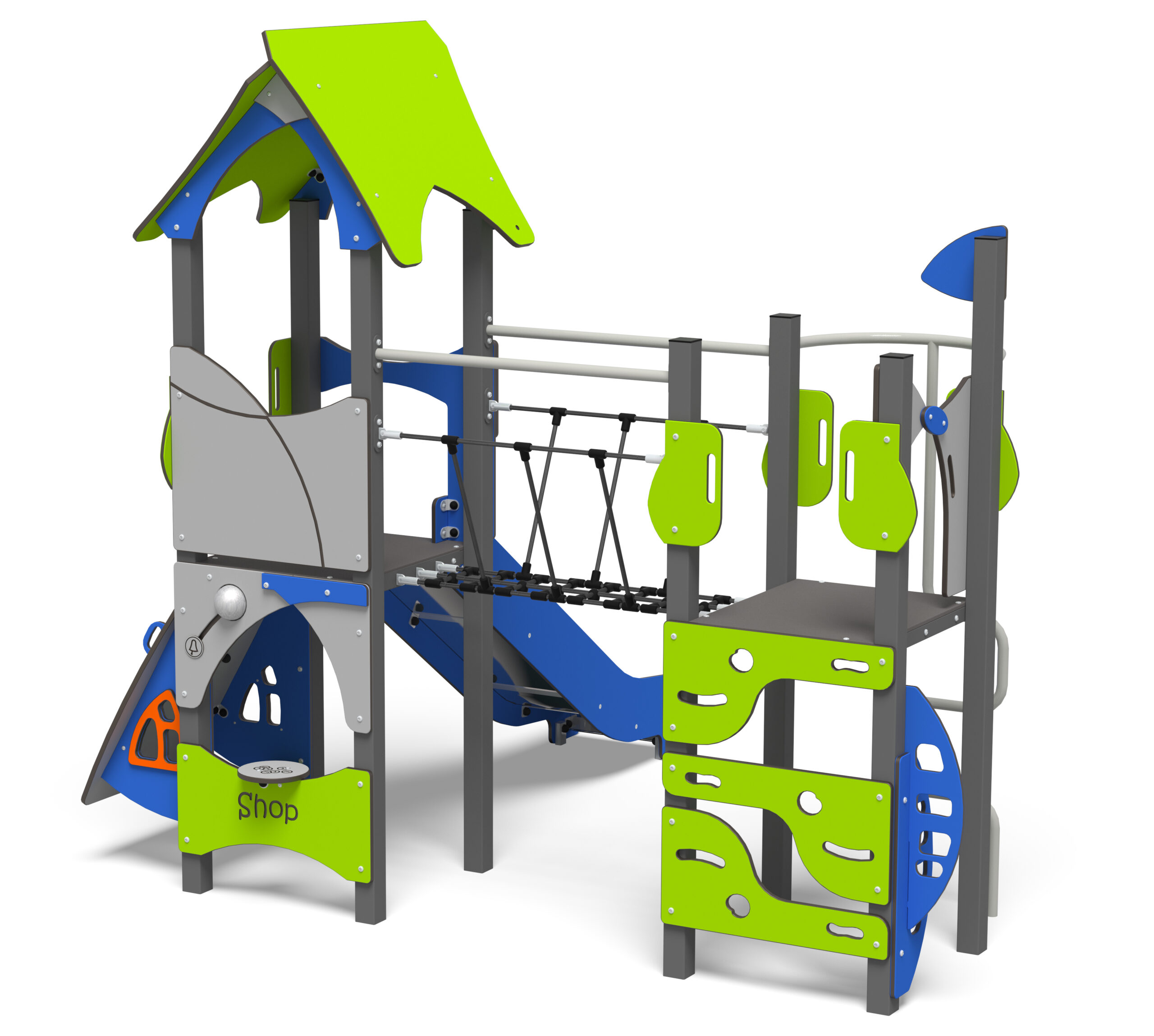 One of the most compact units in the Fantasy range, Gnome features two towers at 1.2m high, one of which includes a roof for added shelter. The ‘under deck’ space beneath the towers is also used to its fullest extent, ensuring this smaller unit offers huge play value.